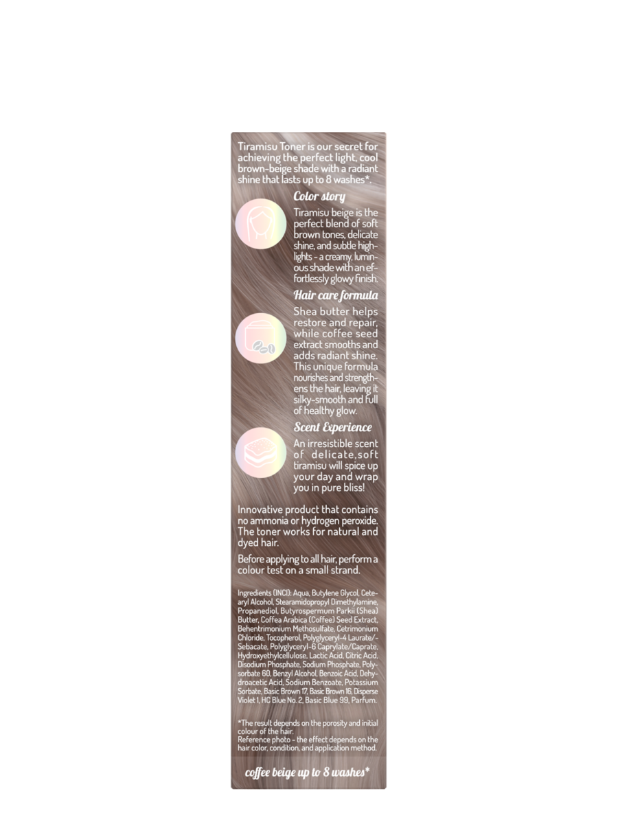 OnlyBio Hair in Balance Toner for blonde hair refreshes your color, giving hair a cool, brown-beige “Creamy Tiramisu” shade.