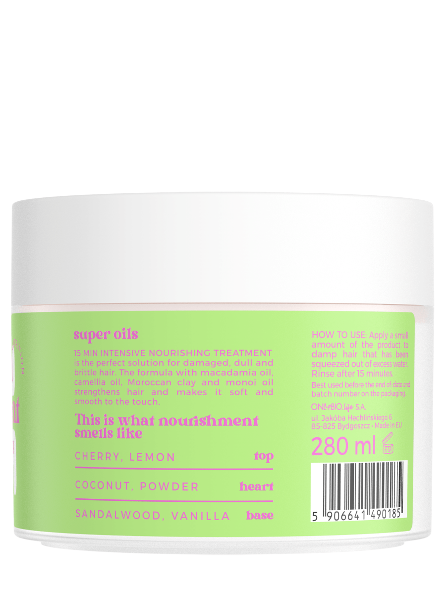 The 15-MINUTE INTENSIVE NOURISHING MASK is the ultimate remedy for damaged, dull, and brittle hair. Infused with macadamia oil, camellia oil, Moroccan clay, and monoi oil, this rich formula deeply nourishes, strengthening each strand and leaving your hair incredibly soft, smooth, and irresistibly touchable.