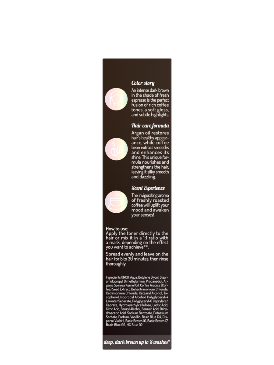 An intense dark brown in the shade of fresh espresso is the perfect fusion of rich coffee tones, a soft gloss, and subtle highlights.