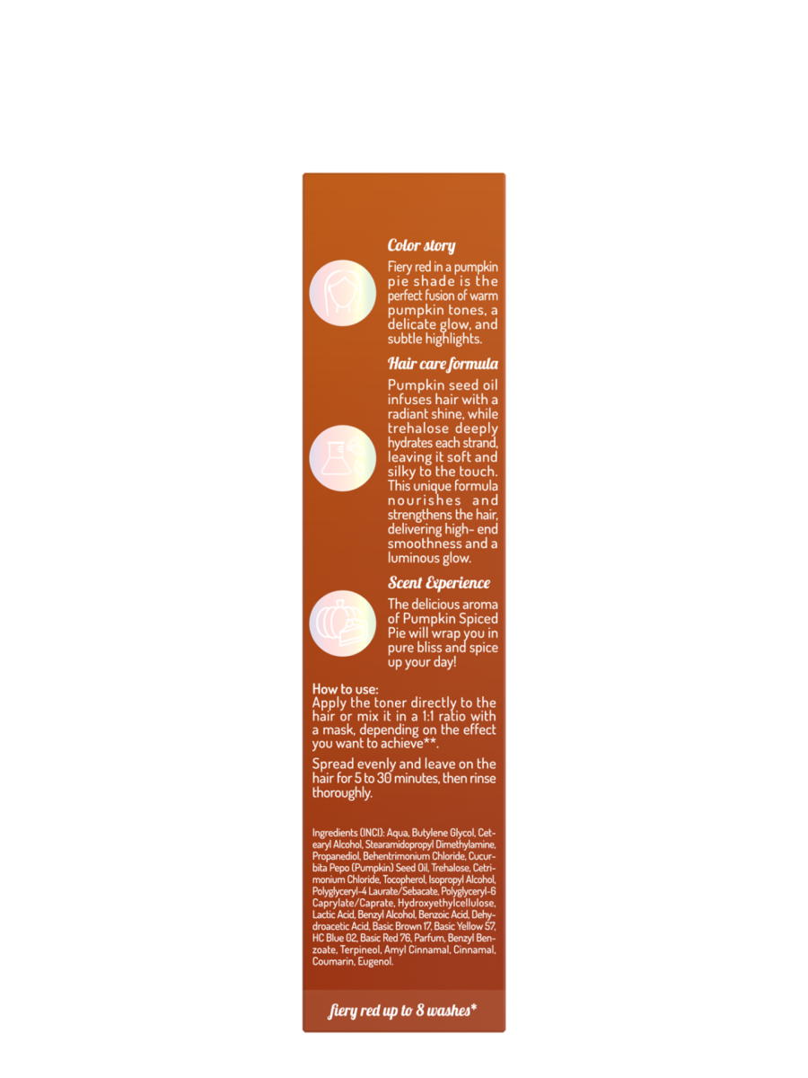 Fiery red in a pumpkin pie shade is the perfect fusion of warm pumpkin tones, a delicate glow, and subtle highlights.